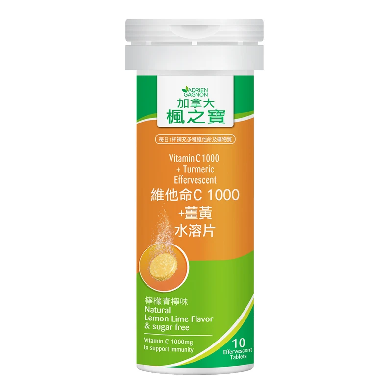 Adrien Gagnon Vitamin C 1000 + Turmeric Effervescent, each tablets contains 1000 mg vitamin C, with multi-vitamins and minerals for a healthy daily consumption. Applied Effer-Soda® on the effervescent tablet’s surface to act as a protectant layer, protects tablet from humidity and enhances the product stability. Sugar, gluten and soy free with natural flavors.