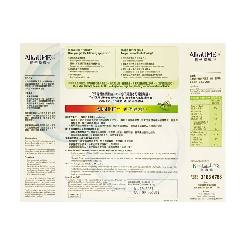 It will constantly promote peristalsis of Colon, improve irregular bowel movement while softening and unplugging mucoid plague.