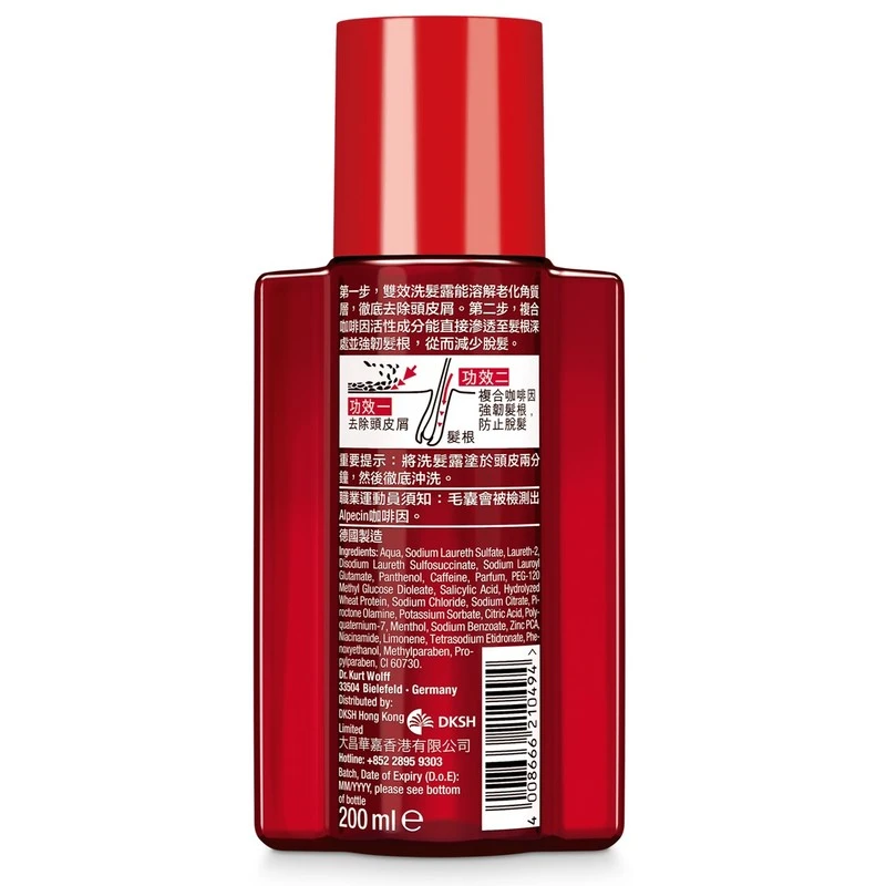 1st effect: Alpecin Double-Effect Caffeine Shampoo loosens scaly, keratinous cells and thoroughly removes dandruff from the scalp.