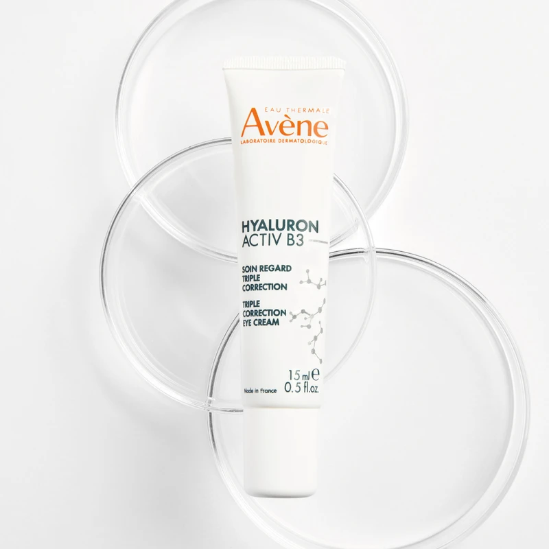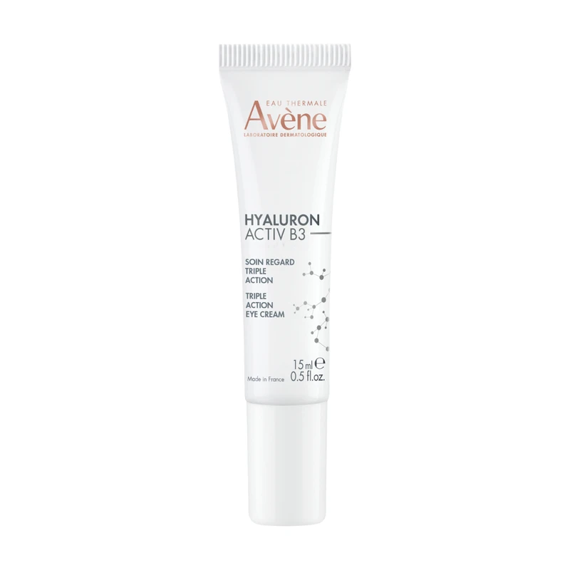 With age everything accelerates. Ageing cells spread and the skin functions in slow motion. Avène dermatological laboratories have created Hyaluron Activ B3 Eye Care, containing dextran sulphate, pure hyaluronic acid (high and low molecular weight) and niacinamide to act on the cause and signs of ageing*. Hyaluron Activ B3 triple correction eye care is an eco-conscious product containing 93% ingredients of natural origin, not derived from animals. Its gel-cream texture provides an immediate fresh effect. The eye contour feels firmer. Wrinkles, bags and dark circles are filled in. Fragrance-free, this product is suitable for the eye contour area, even sensitive ones, as well as the lip contour area. It is also a good base for make-up.