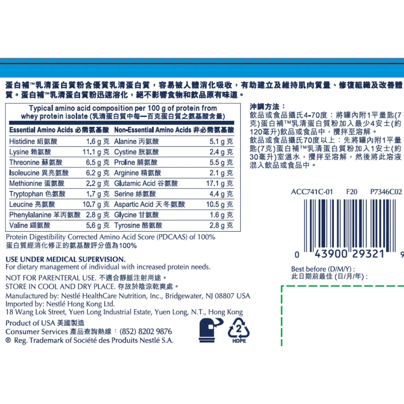 Beneprotein® contains 100% high quality whey protein, rapidly digest and absorb by the body,