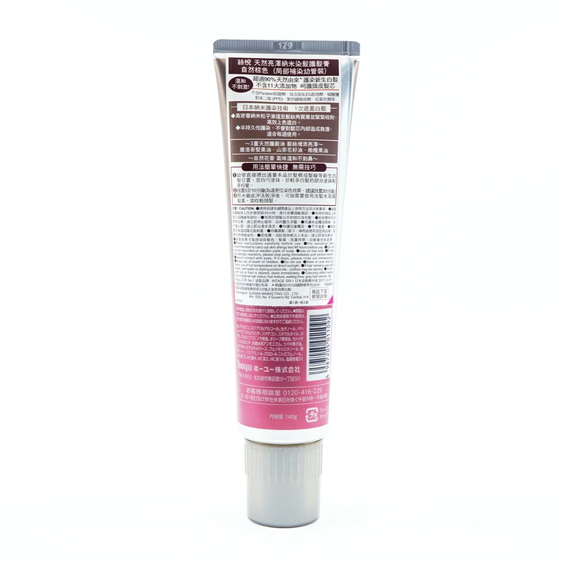 Free of 11 additives, e.g. Paraben, SLS, SLES, PPD, etc, care for scalp and hair inner.