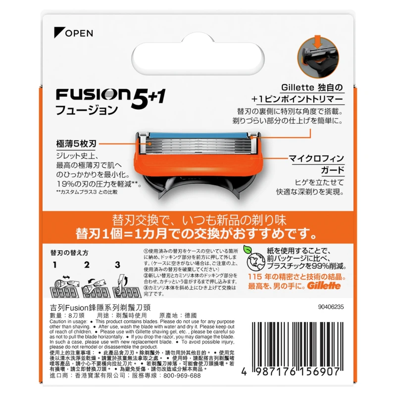 Gillette Fusion Razor have 5 precision blades spaced closer together (vs Mach3) for a smooth long lasting shave.