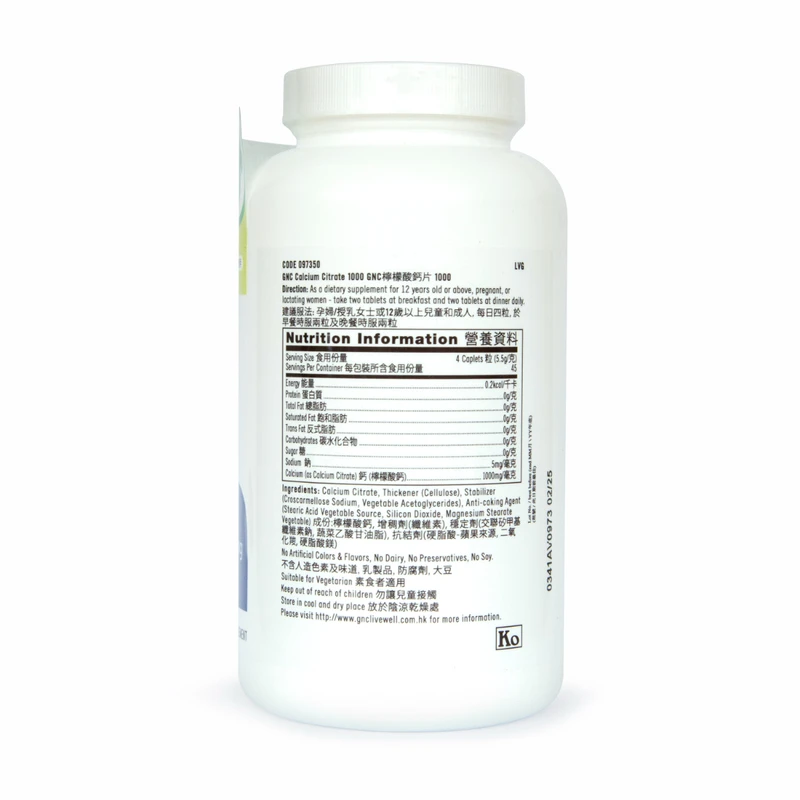 Provides 1000 mg highly absorbable calcium per 4 caplets