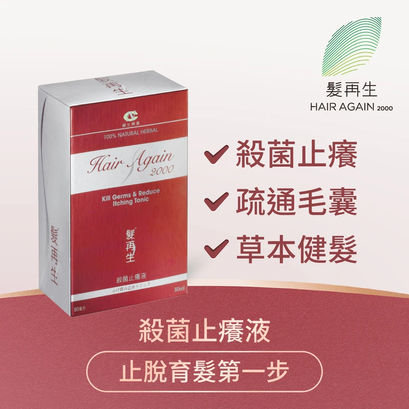 Hair Again 2000 Kill Germs & Reduce Itching Tonic is extracted from the effective ingredients of Chinese herbs. Through external use, the tonic can be absorbed directly to kill germs and reduce itching, as well as nourish the follicles. It can remove dandruff, prevent further hair loss and has the function to maintain hair healthy and promote hair growth.