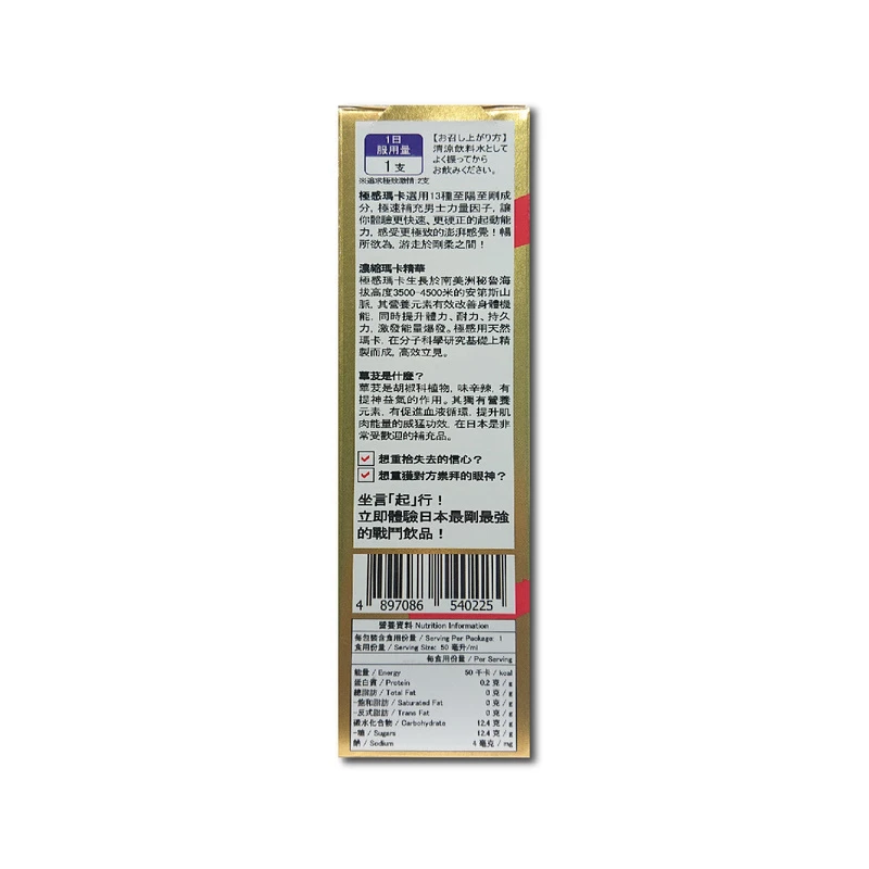 Replenish men’s strength factor, improve physical function, improve physical strength, endurance, endurance, and stimulate energy bursts.