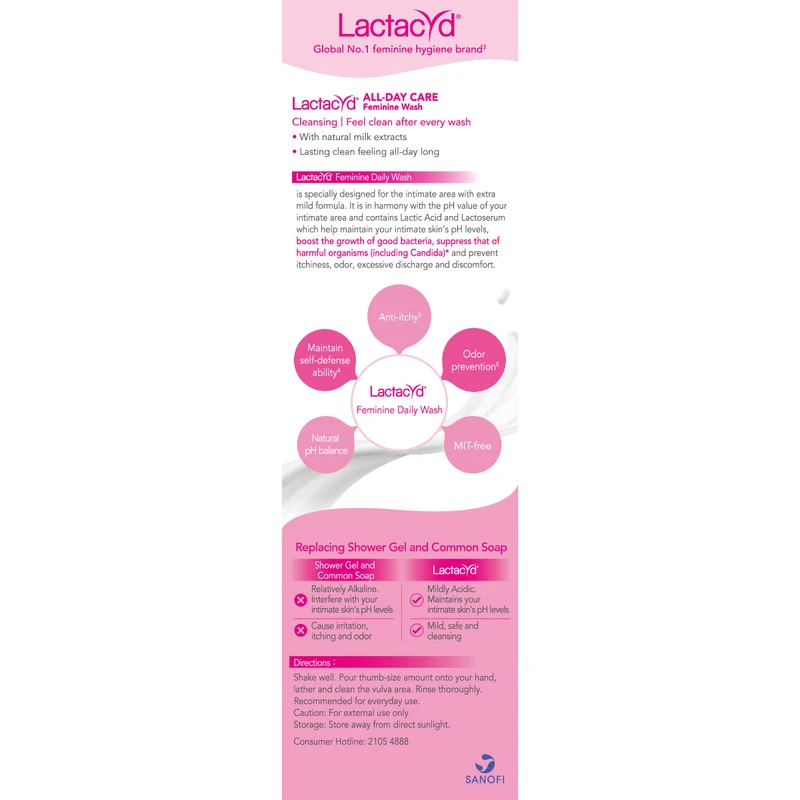Contains Lactic Acid and Lactoserum which help maintain intimate skin’s pH levels of females, suppress the growth of harmful organisms including Candida#