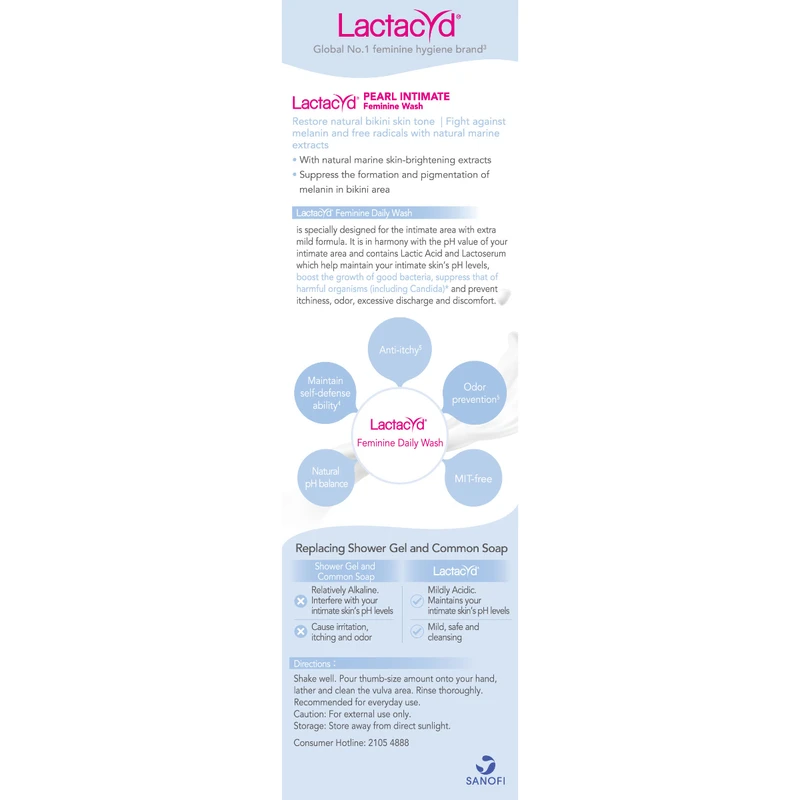 Contains Lactic Acid and Lactoserum which help maintain intimate skin’s pH levels of females, suppress the growth of harmful organisms including Candida#