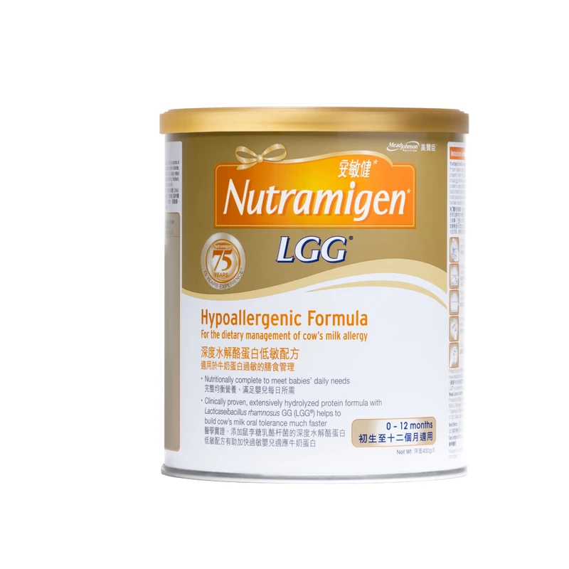Hypoallergenic formula designed for the dietary management of cow’s milk allergy. Nutritionally complete to meet babies’ daily needs. Clinically proven, extensively hydrolyzed protein formula with LGG helps to build cow’s milk oral tolerance much faster. Suitable for 0-12 months babies.