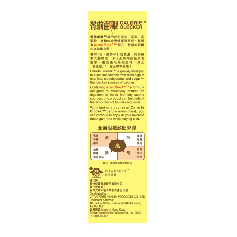 Calorie Blocker™ is specailly develped to block out calories from diets high in oils, fats, carbohydrates and sugar — the four key sources of calories.