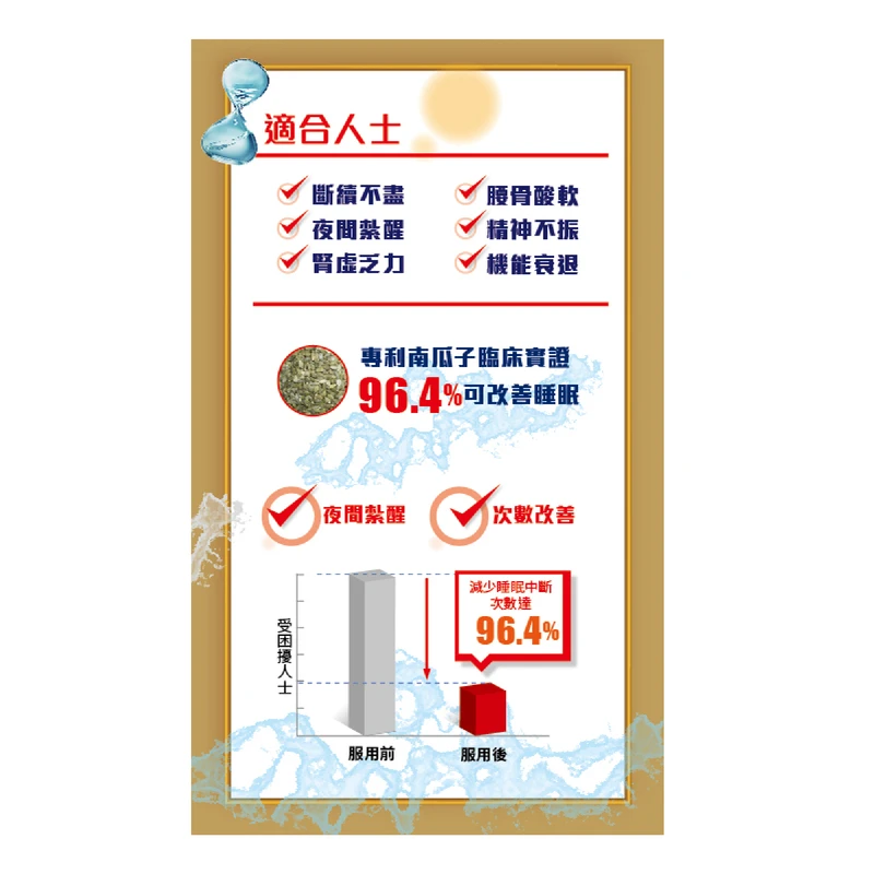 Patented pumpkin seeds plus Western and Chinese herbal ingredients can effectively prevent and improve the prostate problems, nourish yin and kidney, diuresis and dampness.