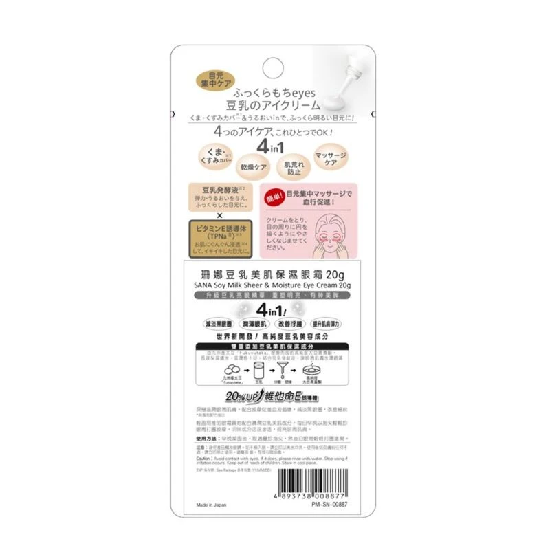 Upgraded soymilk concentrate essence x Vitamin E derivative, provides deep moisturization, brightens skin tone, and softens eye skin. 4in1 effect: Firming skin, dark circles, deep moisturizing and smoothing wrinkles.