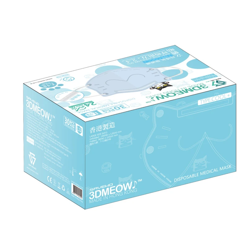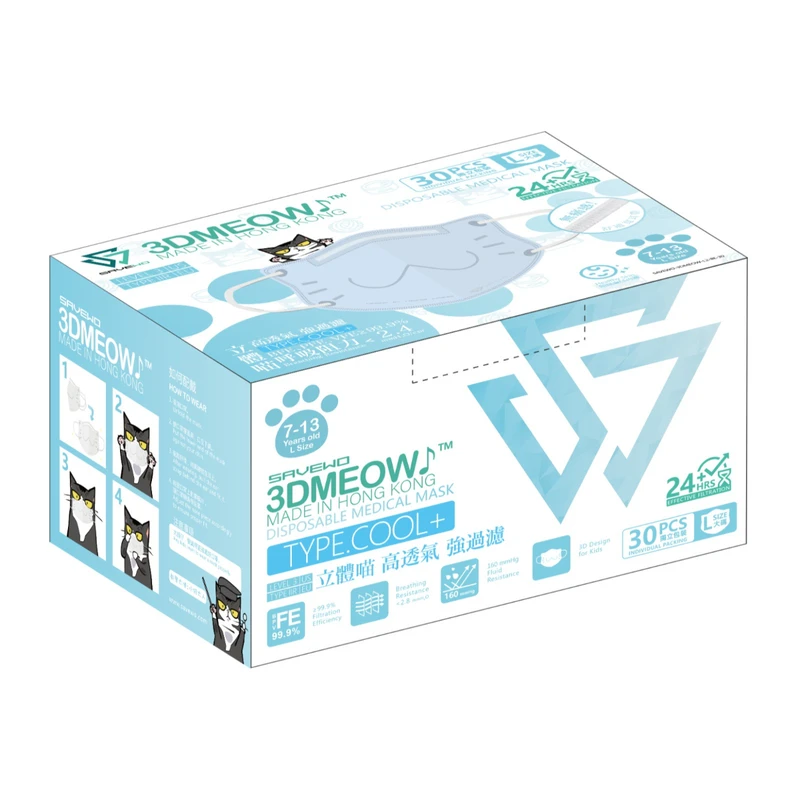 SAVEWO 3DMEOW Mask (Individually Packaged) (for Age Of 7-13 Kids) – Blue 30pcs