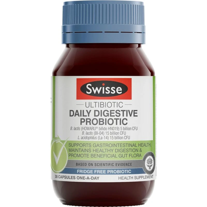 Swisse Ultibiotic Daily Digestive Probiotic is a premium quality formula combining three clinically trialled strains—350 billion CFU of Bifidobacterium lactis (HN019), Bifidobacterium lactis (BI-04) and Lactobacillus acidophilus (La-14)—specifically formulated to support gastrointestinal health, maintain healthy digestion and promote beneficial gut flora.